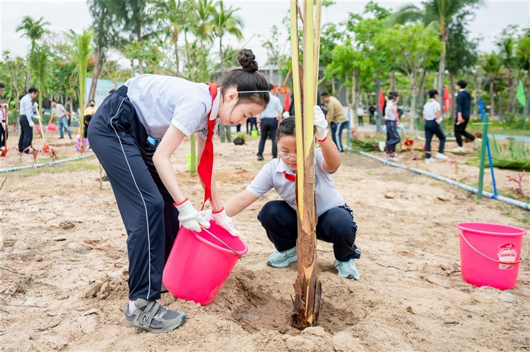 三亚开展集中义务植树活动 王祺扬陈希刘耿林海宁参…