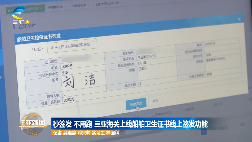 秒签发 不用跑 三亚海关上线船舶卫生证书线上签发功能