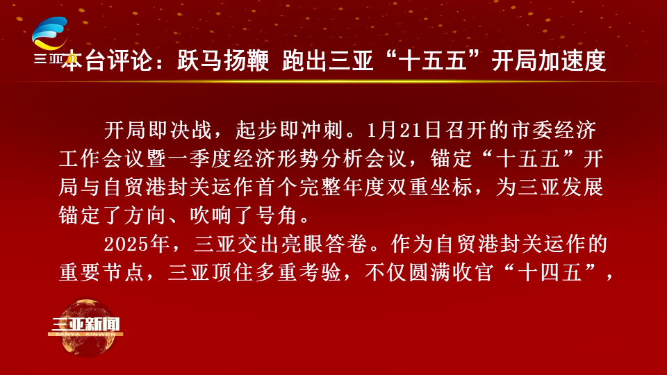 本台评论:跃马扬鞭 跑出三亚“十五五”开局加速度