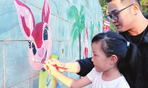 一面亚沙墙绘出三亚“全民东道主”热情