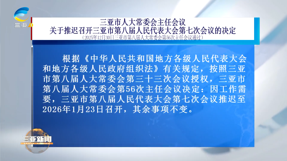 三亚市人大常委会主任会议 关于推迟召开三亚市第八届人民代表大会第七次会议的决定