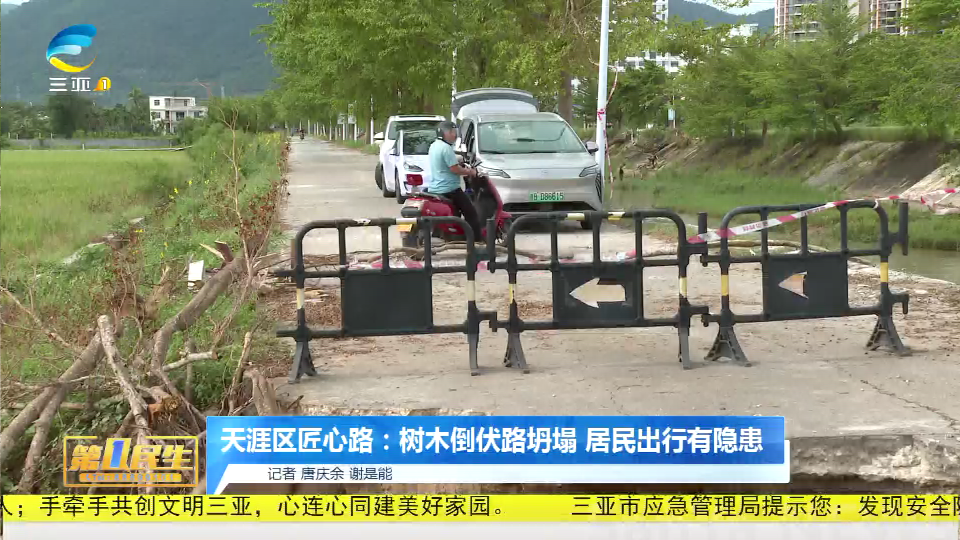 天涯区匠心路:树木倒伏路坍塌 居民出行有隐患
